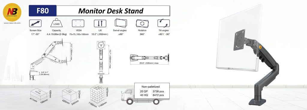 Кронштейн для монитора NB F80 — это удобное и практичное решение для организации рабочего места. Этот кронштейн позволяет крепить монитор размером от 17 до 30 дюймов с максимальной нагрузкой до 9 кг на стол или другую горизонтальную поверхность. Кронштейн имеет регулировку высоты, угла наклона и поворота монитора, а также кабель-канал для аккуратного скрытия проводов. Кронштейн выполнен из прочного металла и имеет стильный черный цвет. Кронштейн для монитора NB F80 — это идеальный выбор для тех, кто ценит комфорт, эргономику и качество.