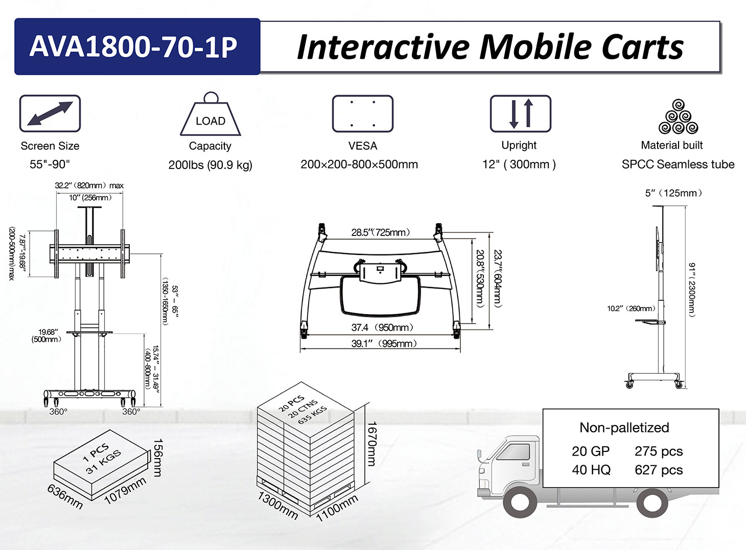 | Совместимая диагональ экрана | 55-90" |